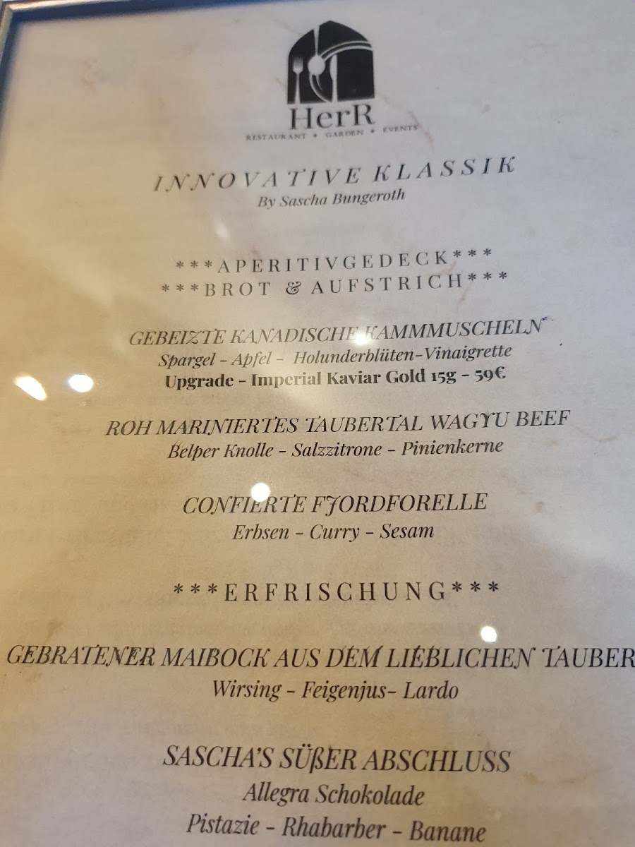 Welcome to HerR Restaurant, a hidden gem nestled in the heart of Rothenburg ob der Tauber. This charming establishment offers an extraordinary dining experience, showcasing a thoughtfully curated menu that celebrates local ingredients. One standout is the Tauberthal Wagyu, expertly featured in a delightful five-course offering.